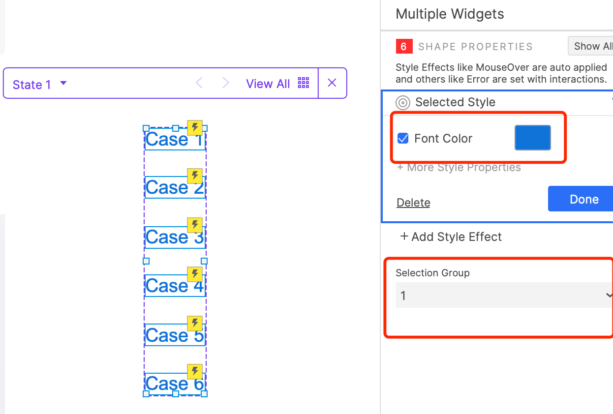 2. Then make text links for scrolling. We have added 6 hotspots, so we need 6 text links; Set their selected style and set their selection group.