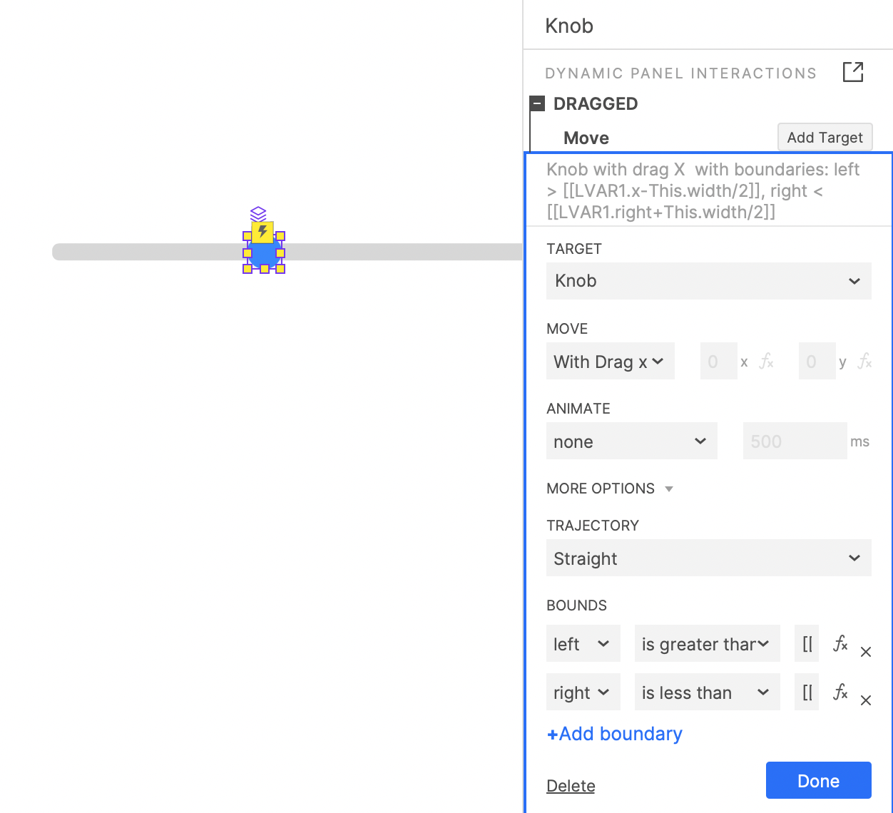 1. When knob is dragged, set it to move with dragX. In this way, knob can follow the horizontal axis of the mouse.